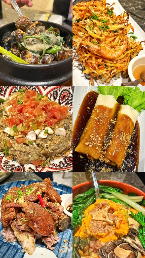 The mains didn’t hold back—crispy pata, kare-kare, sisig, poqui-poqui, sinigang na bangus, tortang talong.