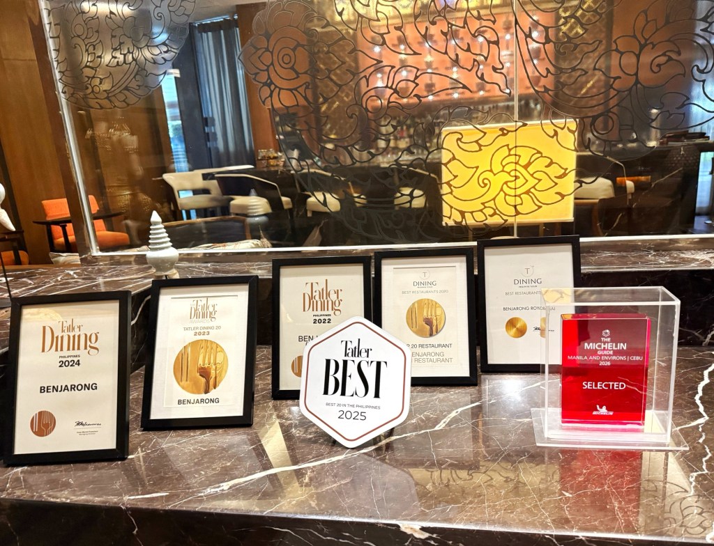 Benjarong is the signature Thai restaurant of Dusit Thani Manila, part of the longstanding Dusit International brand with deep Thai roots.This is not a casual Thai eatery. Benjarong focuses on traditional and Royal Thai–inspired cuisine, with dishes built around the careful balance of sweet, sour, salty, bitter, and spicy. Many are based on heritage recipes, thoughtfully refined for modern palates. The menu spans beloved Thai classics alongside elaborate tasting experiences that echo centuries-old culinary traditions.Over the years, Benjarong Manila has earned multiple accolade including the THAI SELECT seal of authenticity and recognition from local dining guides like Tattler , cementing its reputation for both authenticity and elevated service. Recently , it received a Michelin- Selected recognition and now part of the Michelin Guide.