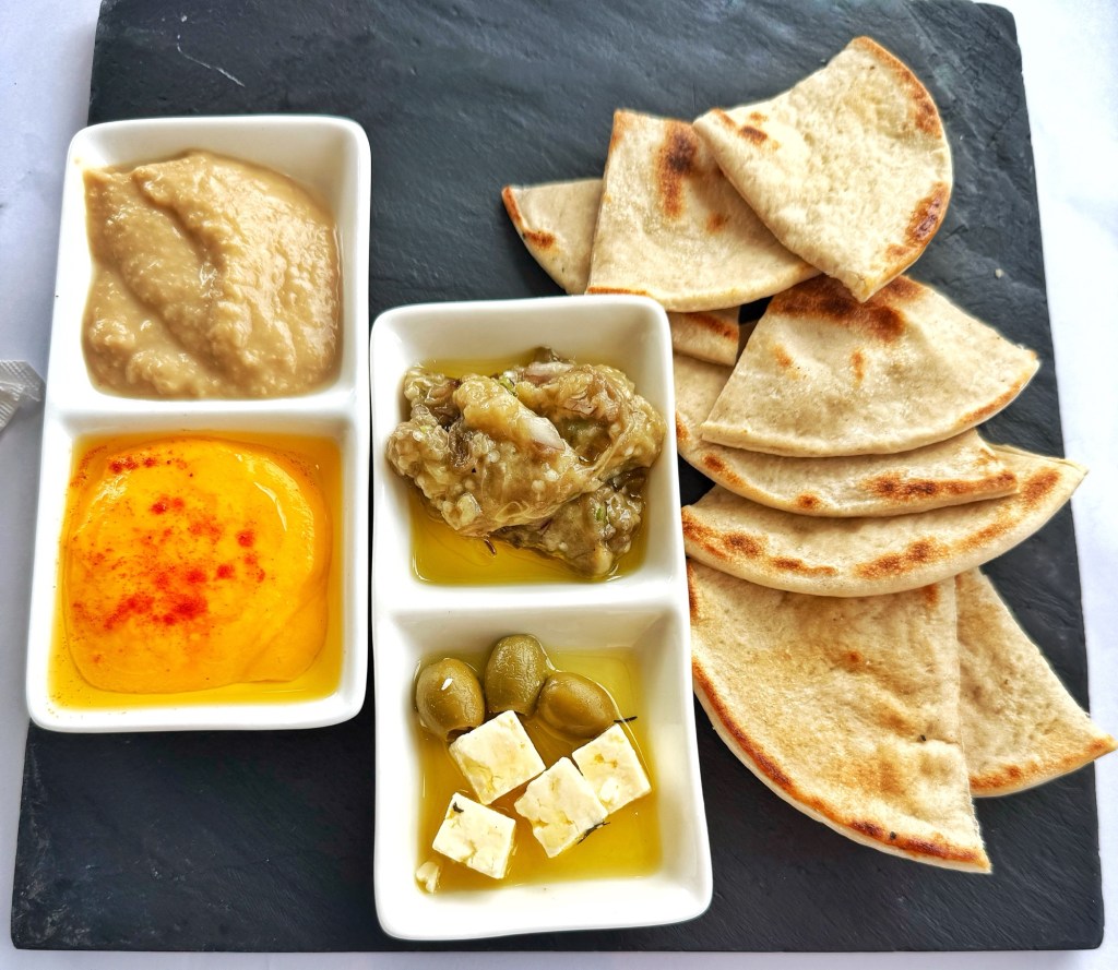 As the morning progressed, I sampled the Watermelon Breeze , then a sweet-and-sour apple concoction enlivened with cucumber, ginger, and celery. Crisp bacon arrived on the side, soon joined by the mezze plate, a restrained Mediterranean composition of pita bread, hummus, tzatziki, olives, and feta—before returning, deliberately, to fruit for a gently saccharine conclusion.