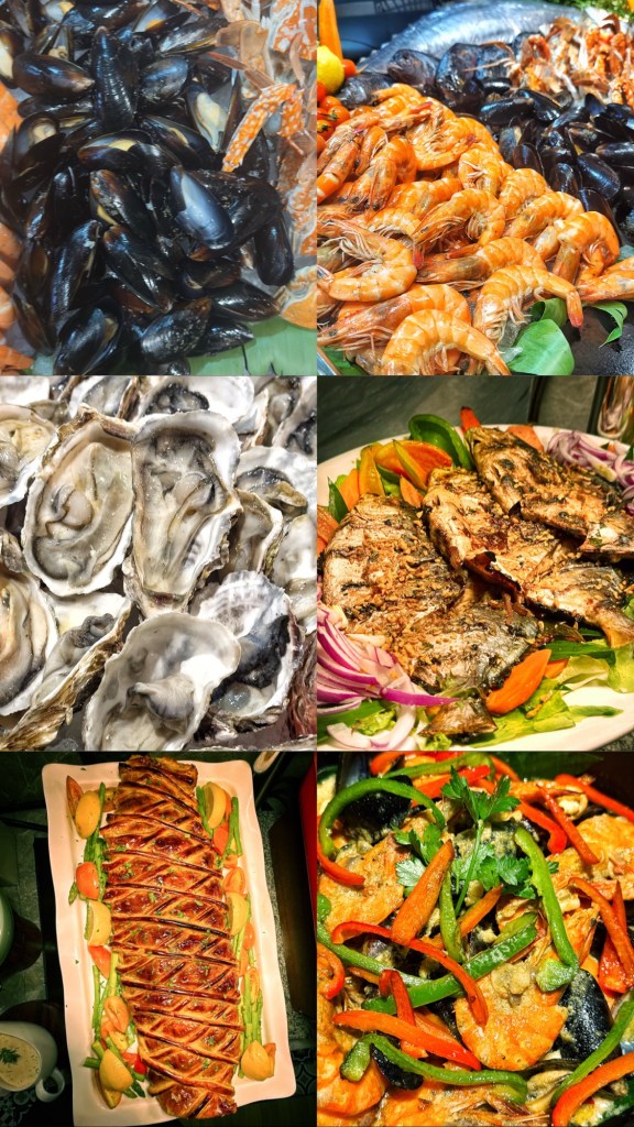 Weekends bring a seafood-forward showcase, highlighting ocean-fresh selections alongside beloved buffet classics.