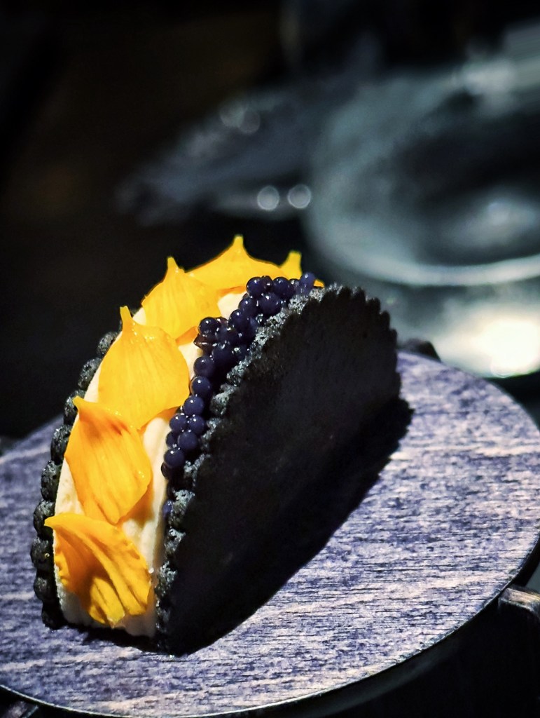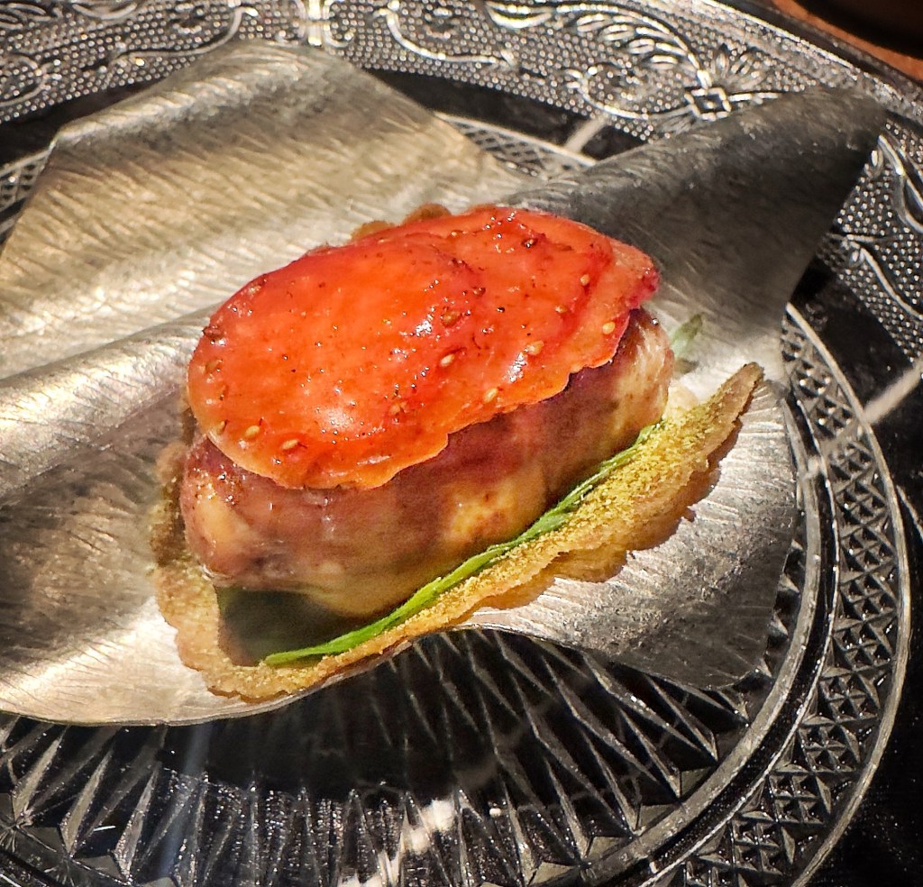 The handsome hubs and I are unapologetic foie gras devotees, so this course won us over instantly. At first glance, it evokes a decadent Oreo, jet-black honey tuile neatly sandwiching a velvety duck liver mousse. Thin and crisp with a whisper of sweetness, the tuile provides a precise counterpoint to the luxurious richness of the foie, turning indulgence into something elegantly composed rather than excessive.