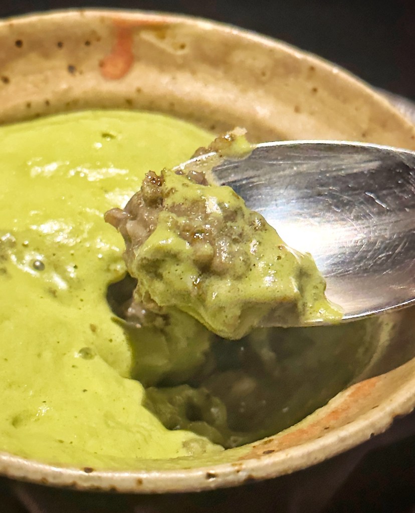 Threaded through the dessert was sobacha, a Japanese tea made from roasted buckwheat. Nutty, toasty, and slightly earthy, it added depth and a subtle bitterness that tempered the sweetness and tied the dish together.
