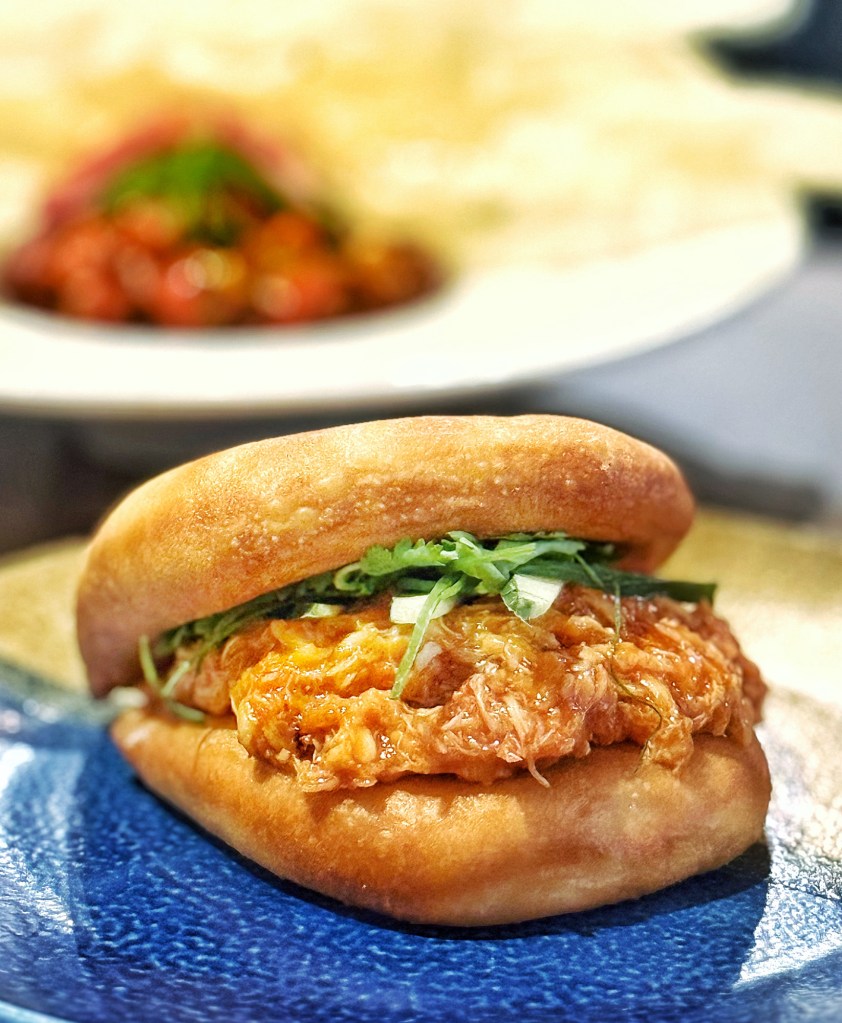 I have a soft spot for mantou, and this version hits all the right comfort notes. The fried bun cradles generous flakes of local blue crab tossed in sweet chili and fresh herbs, with cucumber lending a cool, crisp counterpoint. It taste of the sea , unmistakably briny