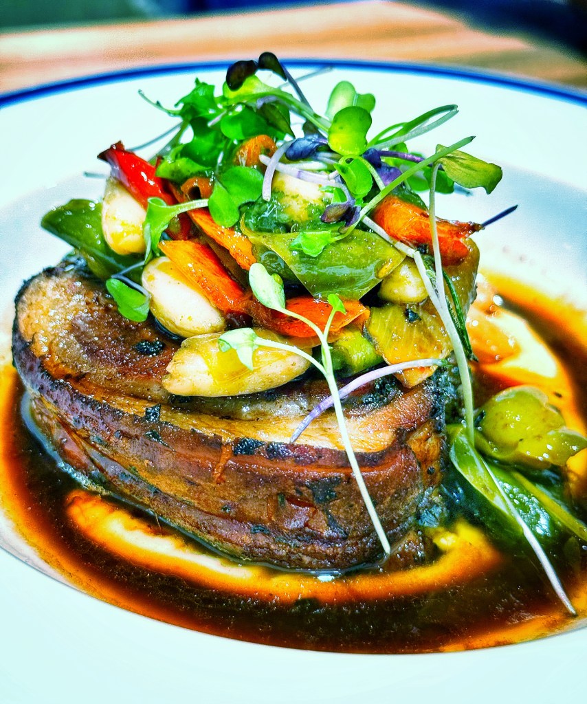 Braised Lamb Saddle, white bean & roasted vegetables 1950