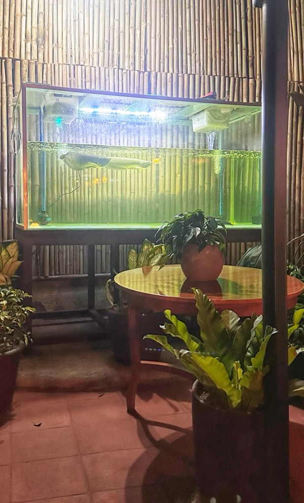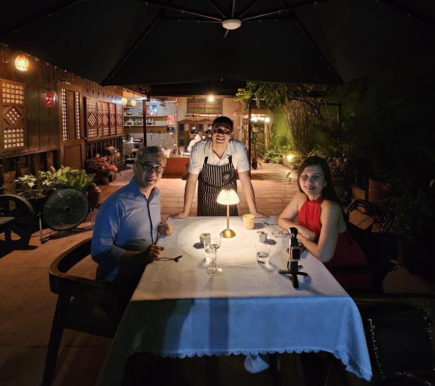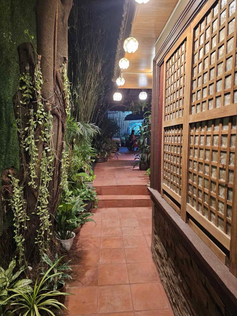 The setting itself felt deeply nostalgic. The patio floor was paved with red tiles reminiscent of old Filipino homes of decades past. Lush greenery surrounded us, softening the space with a garden-like calm.