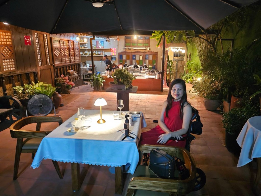 My heart skipped a beat when I noticed the steps at the gate. Wheelchairs and steps rarely make good companions. But before worry could take hold, the gracious host himself, Chef Don Baldosano, quickly stepped in, instructing his servers Kevin and Joseph to assist my handsome hubby. Together they carefully lifted both me and my wheelchair ( all 125 pounds of me plus the chair ) over the first step, and then two more. It was done with such ease and kindness that what could have been an awkward moment became seamless hospitality in motion.