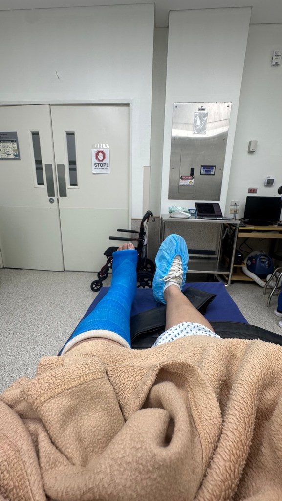 Six weeks after fracturing my fibula, the fiberglass cast finally came off.
