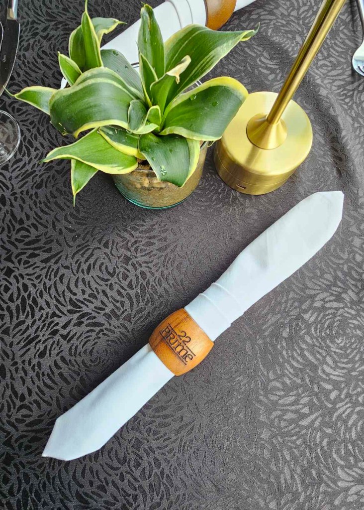 What makes the experience particularly interesting is the setting. This isn’t a casual grill or buffet line. It is proper steakhouse fine dining : black tablecloths, crisp linen napkins, attentive service, and the quiet polish of a dining room that takes its beef seriously.
