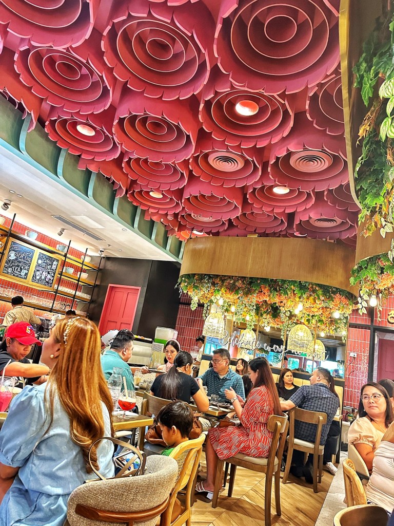 Can I just touch briefly on their interiors? Those pinkish red petals adorning the ceiling were quite eye catching evoking a whimsical-romantic-garden vibe